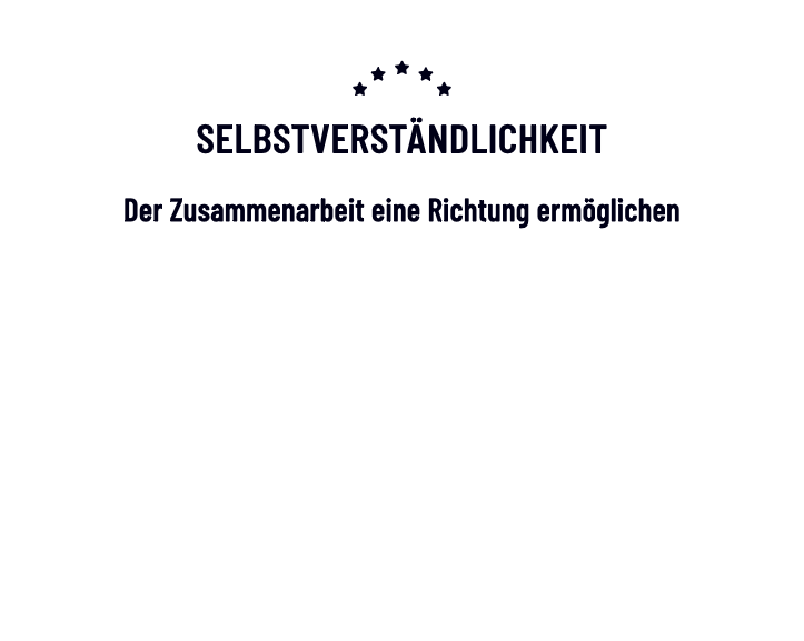 Die Erfahrung zeigt: Regelwerke, Methoden und Techniken sind nicht neutral. Sie blenden stets auch Faktoren aus oder verfälschen sie. Zur Korrektur entwickelt THE AND & FRIENDS ein philosophisch-anthropologisches Reflexionselement. Es wird repräsentiert durch den Leitsatz: »Führung dient, der Zusammenarbeit eine Richtung zu ermöglichen.«